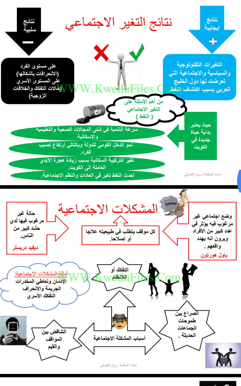 والعنف الأسري والطلاق والانفاق الزائد ومشكلات العمل التطوعي وتدني مشاركة المرأة في الحياة الاقتصادية والسياسية والجريمة. مشكلة العنف ضد المرأة. أمثلة على مشاكل اجتماعية وحلولها. تعرض المجتمع للعديد من الضغوط والمشاكل السياسية والاقتصادية وغيرها.