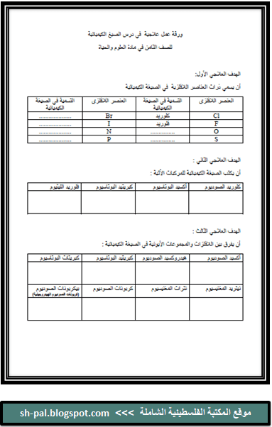 ورقة عمل علاجية في درس الصيغ الكيميائية للصف الثامن الفصل الثاني منتديات المعلم الفلسطيني