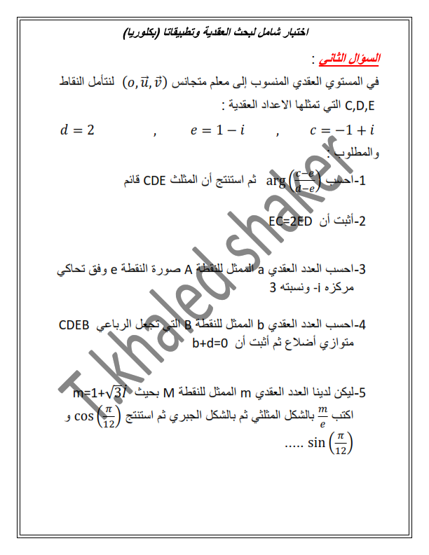 اختبار بحث العقدية في ماذة الرياضيات بكالوريا 2020 المنهاج السوري