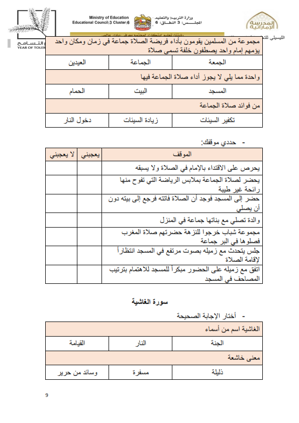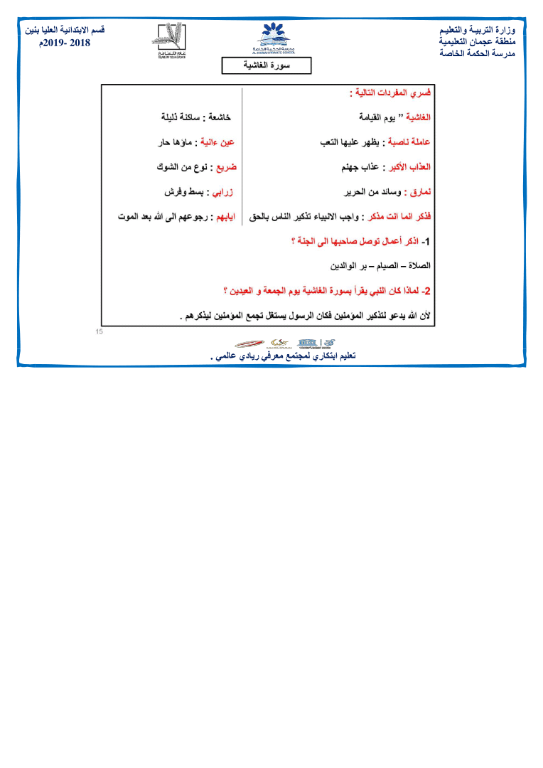 تدريبات في مادة التربية الاسلامية للصف الرابع من الفصل الثاني و الثالث 2019