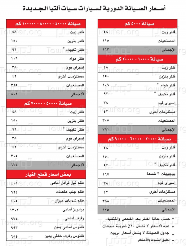 موقع فرصه نت سيات مصر تعلن عن اسعار الصيانة الدورية لسيارات ألتيا وابيزا وليون الجديدة